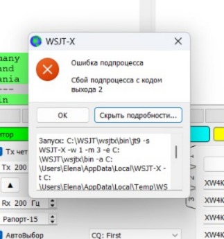 wsjt ошибка подпроцесса сбой подпроцесса с кодом выхода2